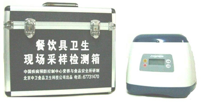 餐饮具卫生(大肠菌群)现场采样检测箱 使用说明 操作方法: 1. 用防泄漏不锈钢制酒精灯将镊子和剪刀头部消毒(点击放大右图)。 2. 用酒精棉球将手消毒。 3. 打开独立包装无菌培养皿,倒入适量专用生理盐水。 4. 剪开检测纸片外包装,用镊子取出纸片,沾取专用生理盐水后,立即贴于食具内侧表面,30秒后取下,置于原塑料袋内。 5. 将装有纸片的塑料袋置于37℃恒温培养箱中培养16~18h观察结果。 BX-2型 便携式恒温培养箱 使用说明 一、特点: 本仪器为便携式培养箱,重量约8 kg,移动方便,即可在实验室使用,又可随时移动车中现场使用。 二、主要技术参数: 工作室尺寸(mm):200×250×200 外形尺寸(mm):350×340×260 控温范围(℃):外界~45 电源电压(V):220 功率(W):50 温度波动(℃):±1 三、使用方法: 1. 将需培养的物品放入箱内,关好箱门。 2. 接通电源,打开电源开关,指示灯亮,表示工作正常,仪表显示工作室温度,然后将按码开关按到所需温度(如37.0℃),绿灯亮表示通电升温,红灯亮表示断电保温,红绿灯交替变化表示进入恒温状态,当仪器恒温30分钟后,仪表显示温度和设定基本一致。并可通过按码进行适当调节。 3. 注意事项: 3.1为保证使用安全,仪器外壳应与地线连接。 3.2仪器应放置在具有良好通风的条件内,相对湿度不大于85%,其周围不应放置易燃易爆及腐蚀性物品。 3.3工作室内物品摆放切勿过挤,以便于热量循环,使物品受热均匀。 3.4箱体内外应保持清洁,长期不用应盖好防尘罩,放置在干燥的室内。 3.5使用过程中,温度变化出现异常,应及时停机检查。 餐饮具大肠菌群检测纸片使用说明 摘自国家GB 14934-94餐(饮)具消毒卫生标准 1 采样方法 随机抽取消毒后准备使用的各类食具(碗、盘、杯等),取样量可根据大、中、小不同饮食行业每次采样6~10件,每件贴纸片两张,每张纸片面积25cm2(5cm╳5cm)用无菌生理盐水湿润大肠菌群检测用纸片后,立即贴于食具内侧表面,30秒后取下,置于无菌塑料袋内。 筷子以5只为一件样品,用毛细吸管吸取无菌生理盐水湿润纸片后,立即将筷子进口端约5cm)抹试纸片,每件样品抹拭两张,放入无菌塑料袋内。 2 检验方法 将已采样的纸片置37℃恒温培养箱中培养16~18h,若纸片保持紫蓝色不变或有红色斑点但斑点周围无黄晕为大肠菌群阴性,在红色斑点周围有黄晕或纸片变黄并在黄色背景上呈现红色斑点或片状红晕为阳性。 2 卫生指标 在50 cm2的纸片上(即两片纸片上),不得有大肠菌群阳性结果出现。如图1:阳性结果(17个菌落)。图2:阳性结果 (满视野)。 |